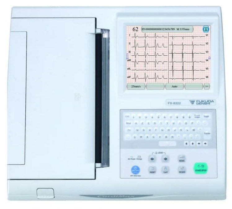 12-channel electrocardiograph from a Japanese manufacturer. The device has a 6.5-inch color LCD touch screen, which displays the maximum information useful for a specialist. The device allows you to measure the heart rate in the range of 20-300 beats. / min, R-R interval, QT time, electric axis, SV1, RV 5 (6). The installed mains, muscle filters, as well as the baseline drift filter allow conducting research with minimal errors. More than 10 functions are optionally connected, including analysis and interpretation of the data obtained, display of conclusion codes, Minnesota, arrhythmia analysis, etc. The internal memory of the device is designed for 500 ECG files, if necessary, you can connect a memory card. Cardiograms are printed using a built-in thermal printer on roll or Z-shaped paper. Up to 12 leads can be displayed simultaneously. It works both from the 220 V network and from the built-in 3800 mAh battery, whose charge is enough for 1.5 hours of operation.