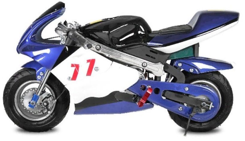 Mini bike of a sports type for road riding. The striking body and many curves give the motorcycle a special charm. Used for training on motorcycle tracks. In urban conditions, you need to be very careful, since the equipment is not equipped with rear-view mirrors. The design of the model assumes the use of this unit by the boys. There are several color schemes, but if girls are engaged in motorcycle riding at a professional level, then it is suitable for them at the initial stage.