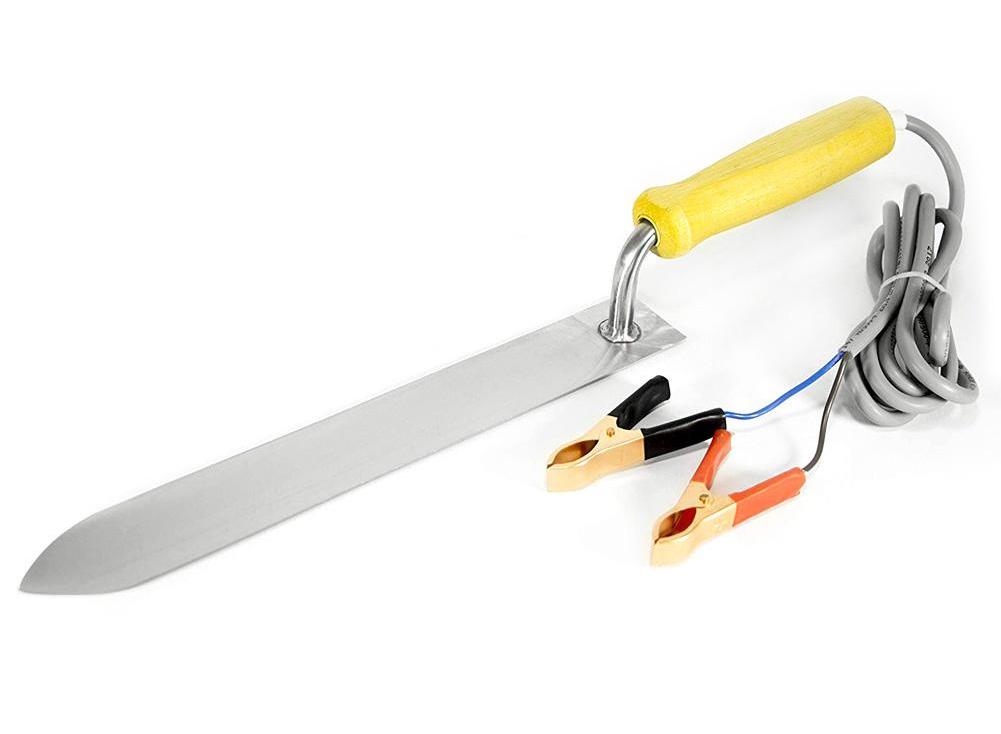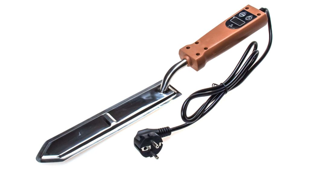 This model is suitable for users who cannot connect the device to the electrical network. The honeycomb cutter is powered by a car battery or other portable power source. The cutting part is made of medical grade metal, therefore it does not lend itself to rust. Also, a special unit for recharging electric knives can be used to operate the device. The device heats up in just one minute. The blade is 23 cm long, the handle is made of plastic.