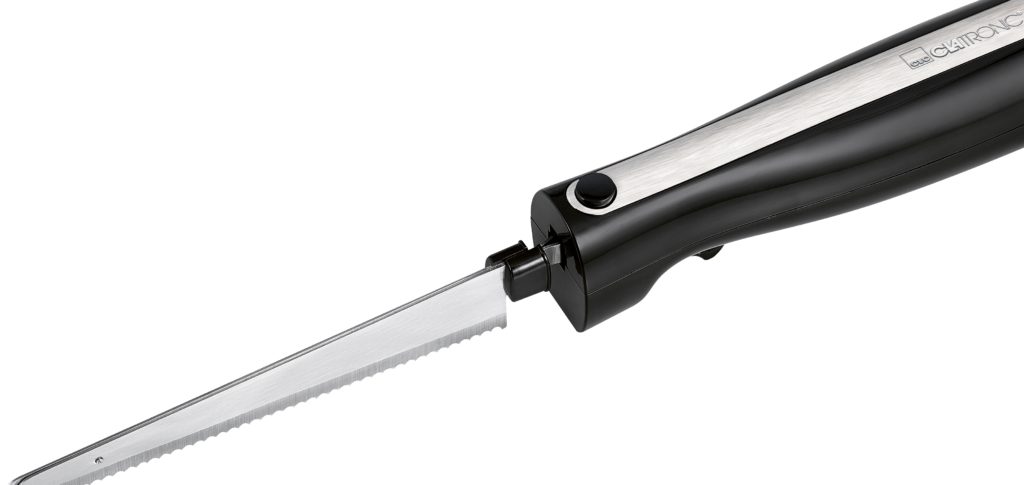 For users who prefer to acquire a universal knife model for cutting all types of products in the kitchen, you need to pay attention to this device. The blade is made of stainless steel, which can withstand long-term stress. The serrated surface of the blade handles bones and hard foods easily. The knife can be used to cut soft foods perfectly. The handle is made of durable plastic. The device is controlled using a button located in a place accessible to the palm of the hand, but does not affect the comfort of use. The model does not make noise during slicing.