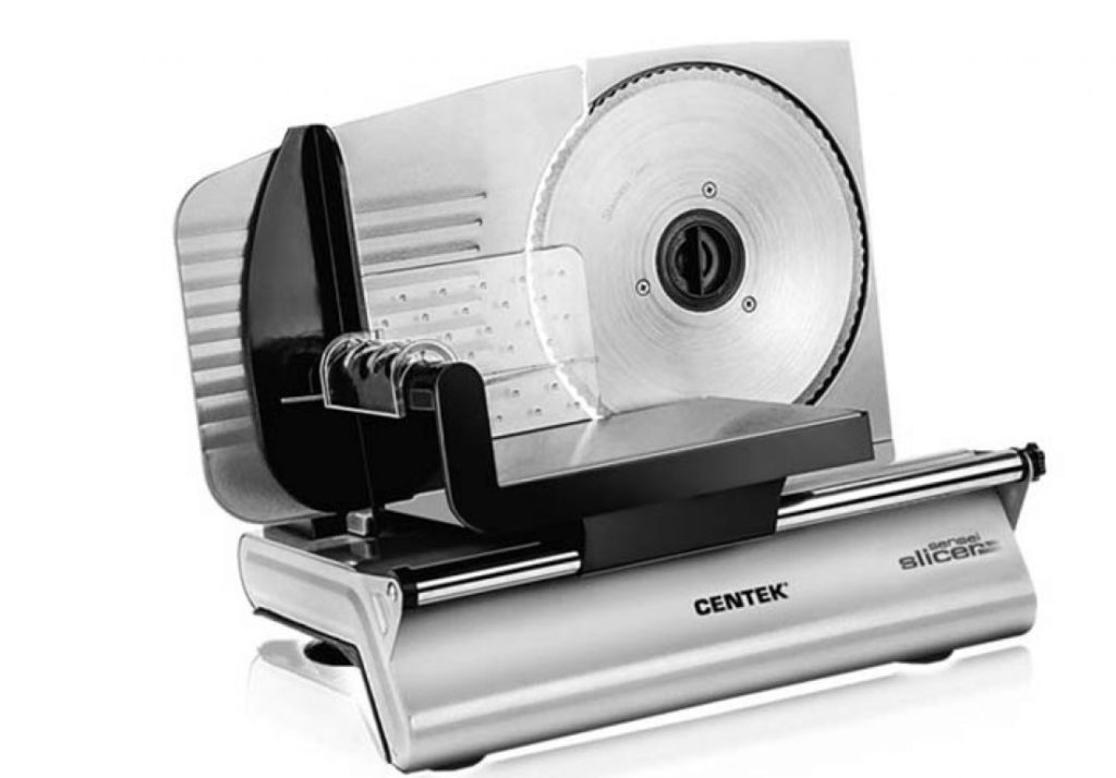 This model is often used for slicing raw and cooked meat. Has a comfortable handle with which the user adjusts the thickness of the cut. It is often used to make shawarma when you need to quickly cut meat into thin slices. The body is made of high quality plastic, there is no noise and strong vibration during operation. The knife is made of stainless steel. The device comes with a removable blade. Despite the fact that the model weighs 1.4 kg, it is very easy to work with such a product.