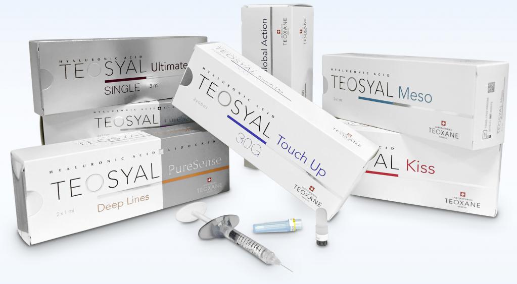 Teosyal - a wide range of products for contouring. The main component is hyaluronic acid. All Teosyal products are combined into two groups: classic fillers and dynamic fillers (for mimically active areas of the face). The PureSense line contains lidocaine.