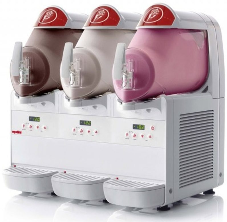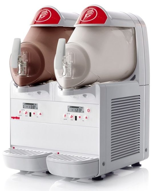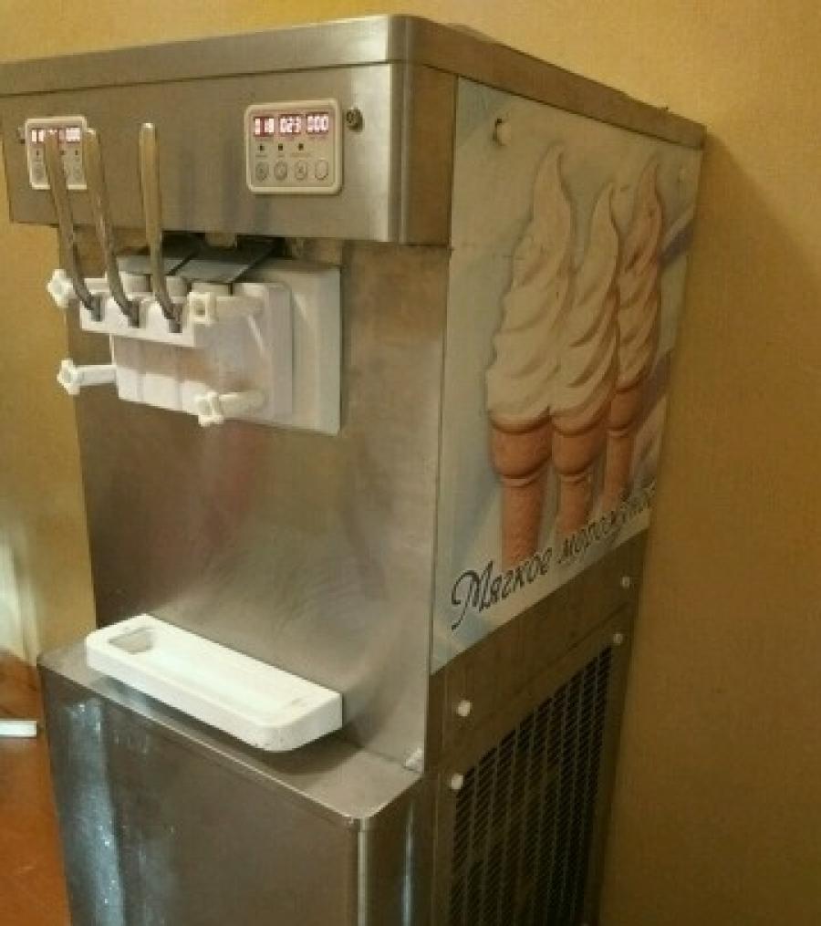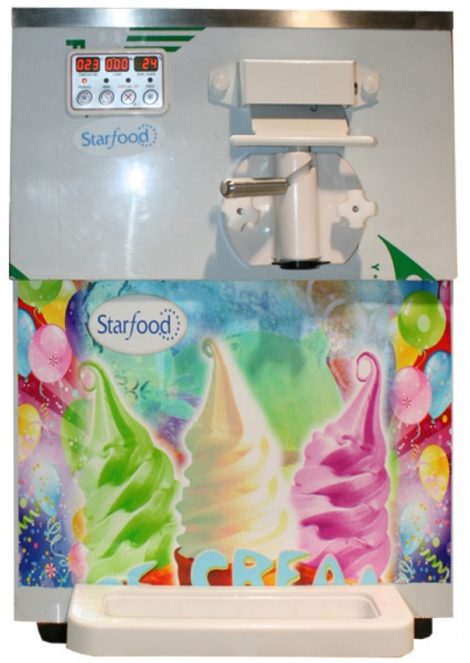 The product for the production of soft ice cream has a high productivity and is often used in public catering places. The appliance has 2 containers for ingredients. The volume of each container is 5.8 liters, which makes it possible to produce a large amount of dessert in 1 hour. The device can produce 3 different dessert flavors. Fully automated control is also an advantage.