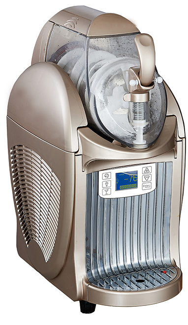 The device has one container with a volume of 6 liters. The container is made of transparent material, which is illuminated during operation. If necessary, the user has the ability to independently adjust the density of the finished product. The freezer is designed for one horn and is small in size. Therefore, it can be used both on a bar counter and in other trade conditions.