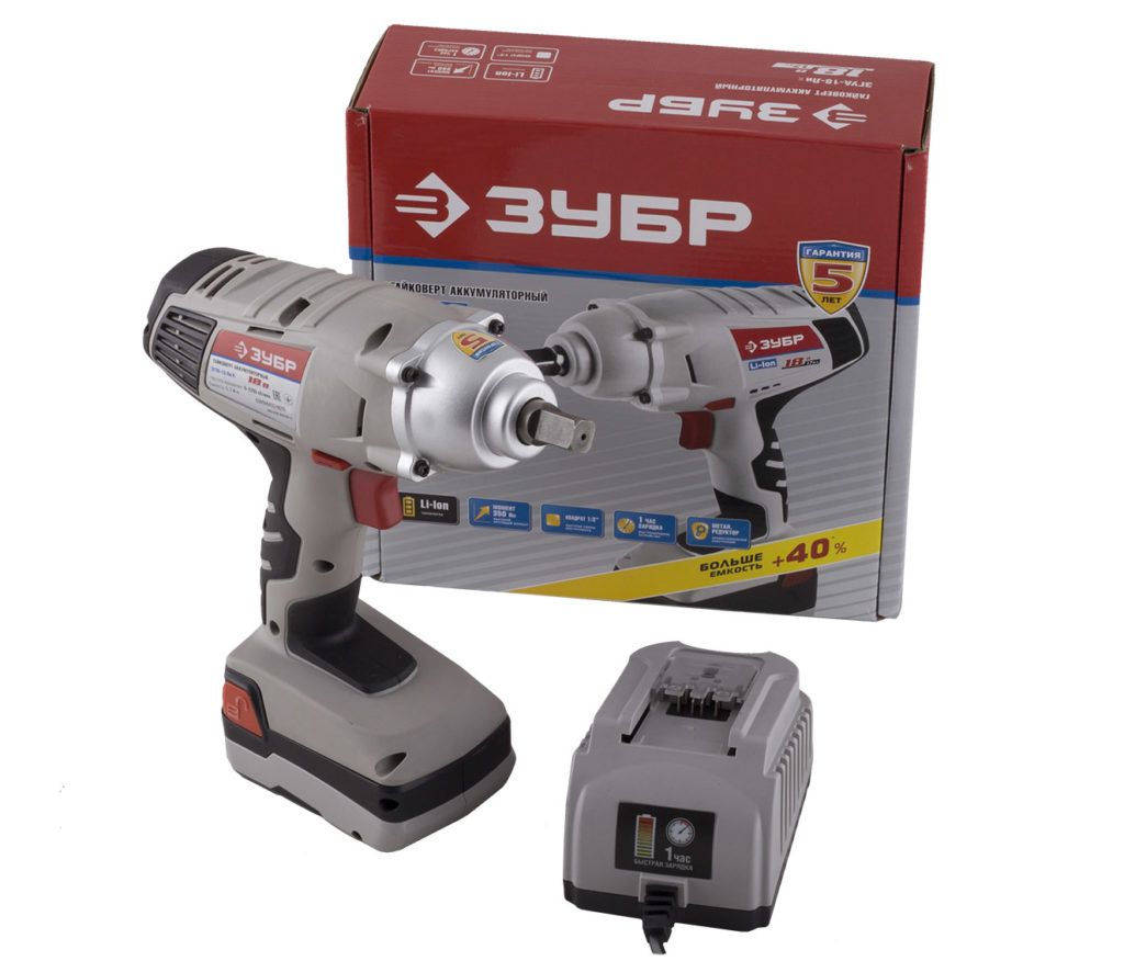 The set includes: 2 batteries of 4 A * h each, an adapter from 1/2 "square to standard bits is provided. The wrench has a metal body - this ensures reliability.