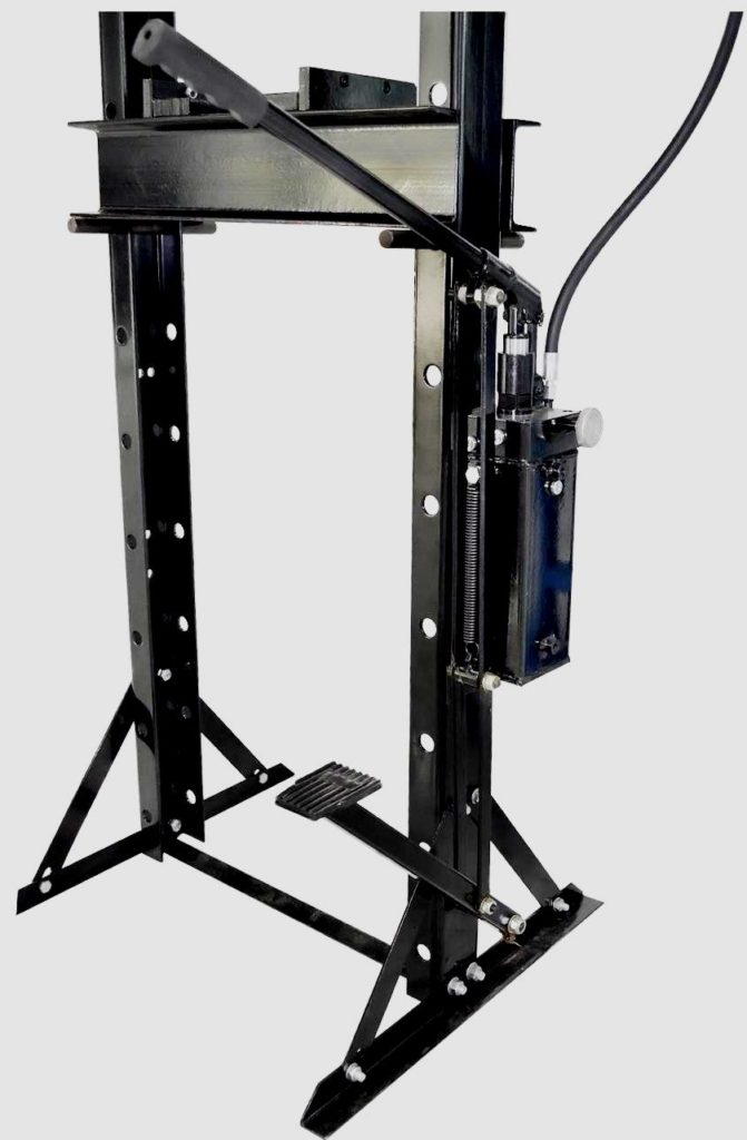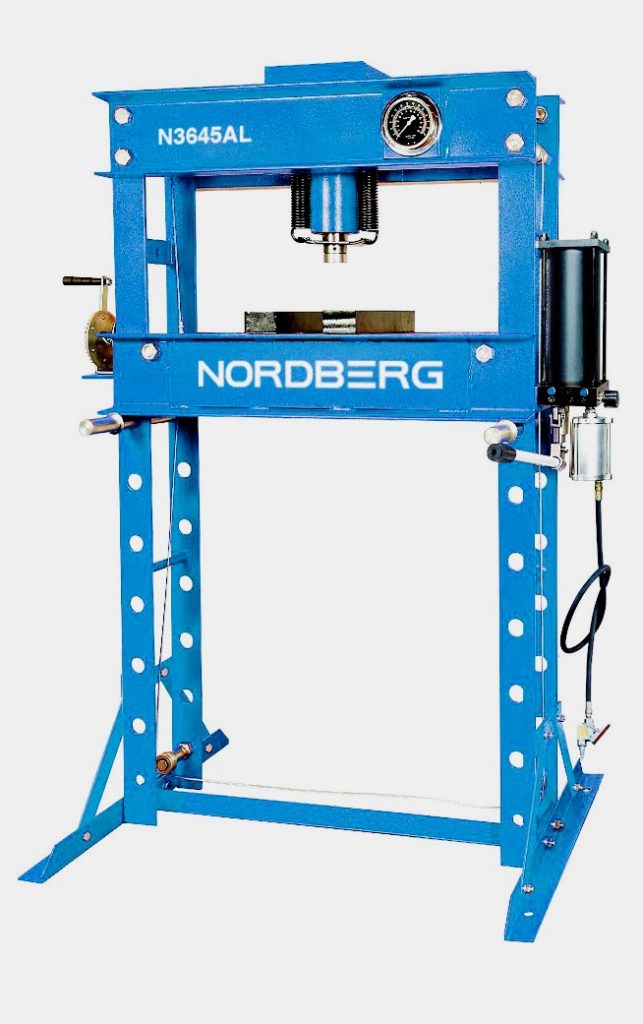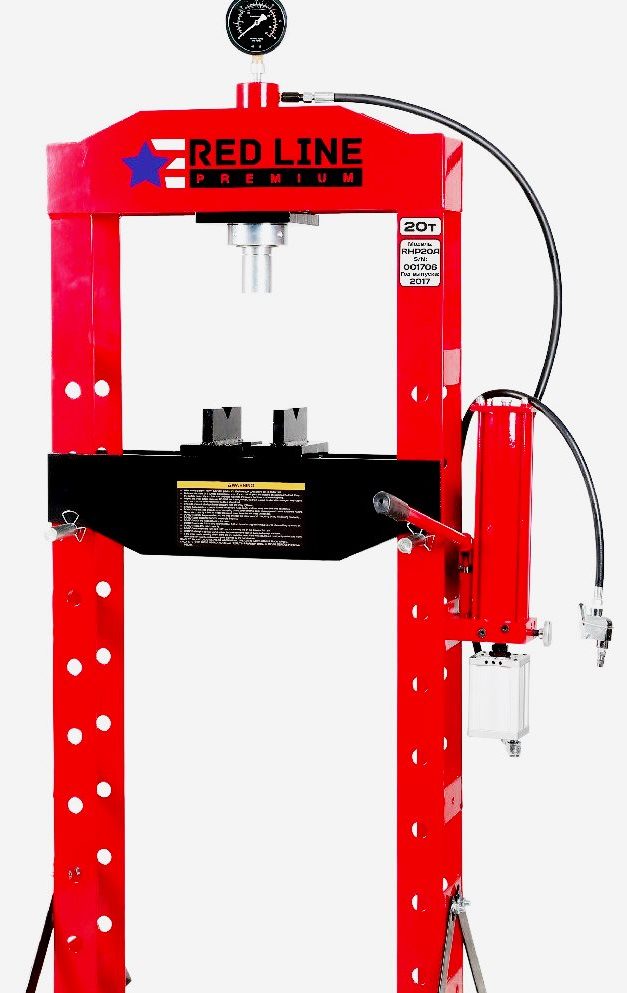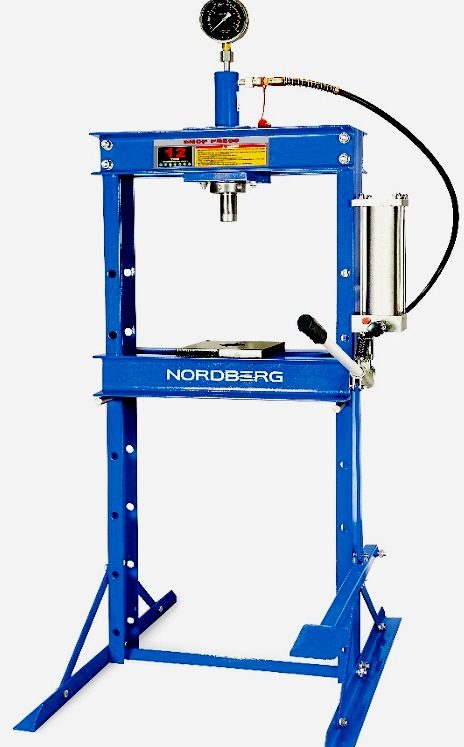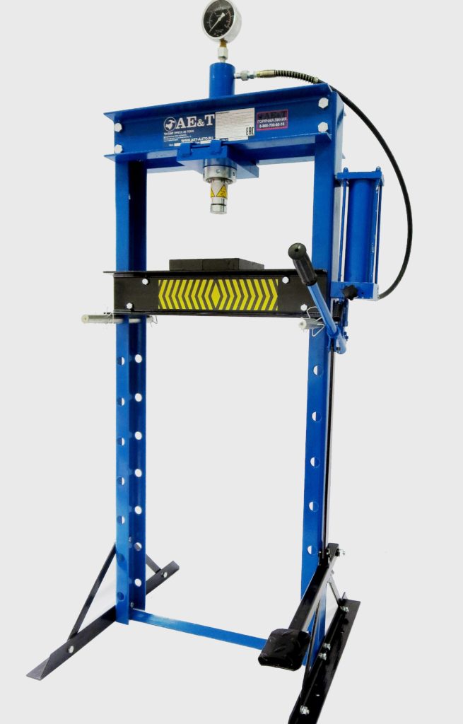A feature of this model is the presence of a pneumatic and manual drive. The frame is fully welded, robotic technologies were used in the manufacture, thanks to which the structure turned out to be as strong as possible. The cylinder is displaced horizontally, the height of the parts is 1018 mm, the vertical stroke is 145 mm, the reinforcement is 20 tons. The weight of the equipment is 102 kg.