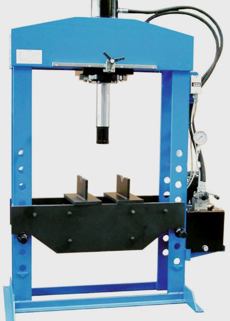 The electro-hydraulic press has a portable foot drive. It is widely used in manufacturing plants and service stations. Operates from a 380 V electrical network. The maximum allowable force is 60 tons. Main technical characteristics: