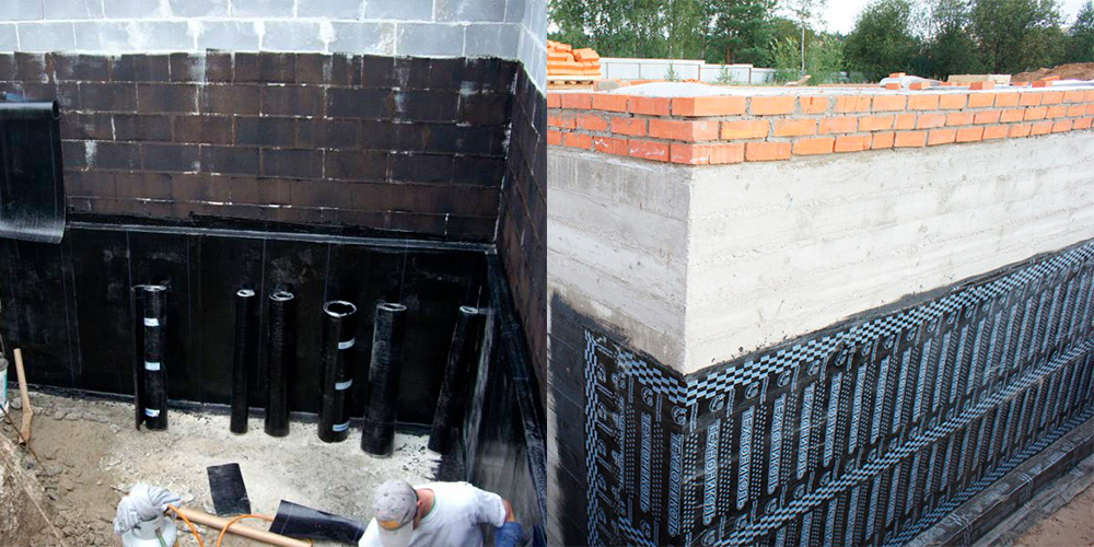 Their complexity lies in the fact that the layer should not only protect the structure from water, but also prevent the ingress of groundwater into the basement.The use of various waterproofing materials will depend on the depth of the foundation and the level of soil flow. In very simple cases, it is possible to use a profiled membrane based on polymers, and use a coating compound for the interior treatment of the basement. The profiled membrane on a polymer base will also be able to protect the base from tree roots, sharp debris from construction debris, while simultaneously performing a drainage function. It is impossible to ignore the above-ground elements of the foundation. When processing them, take into account the environmental conditions. For temperate climates, coating insulation using an impregnating bitumen-polymer mastic is suitable. And in a harsh climate, which is characterized by sharp changes in temperature, it is preferable to do the processing by pasting with rolls or use a penetrating method - all this will significantly increase the strength of the base.