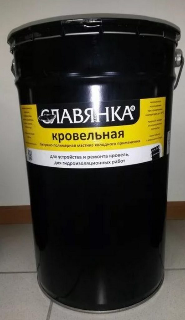 An inexpensive sample of bitumen-polymer mastic, perfect for all types of roofing. Works equally well on metal and wood. Allowed to use in conjunction with reinforced glass mesh or fiberglass. More focused on horizontal surfaces.