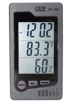 "DT-322 Instruments" from the manufacturer "CEM" with readings of temperature and humidity measurements