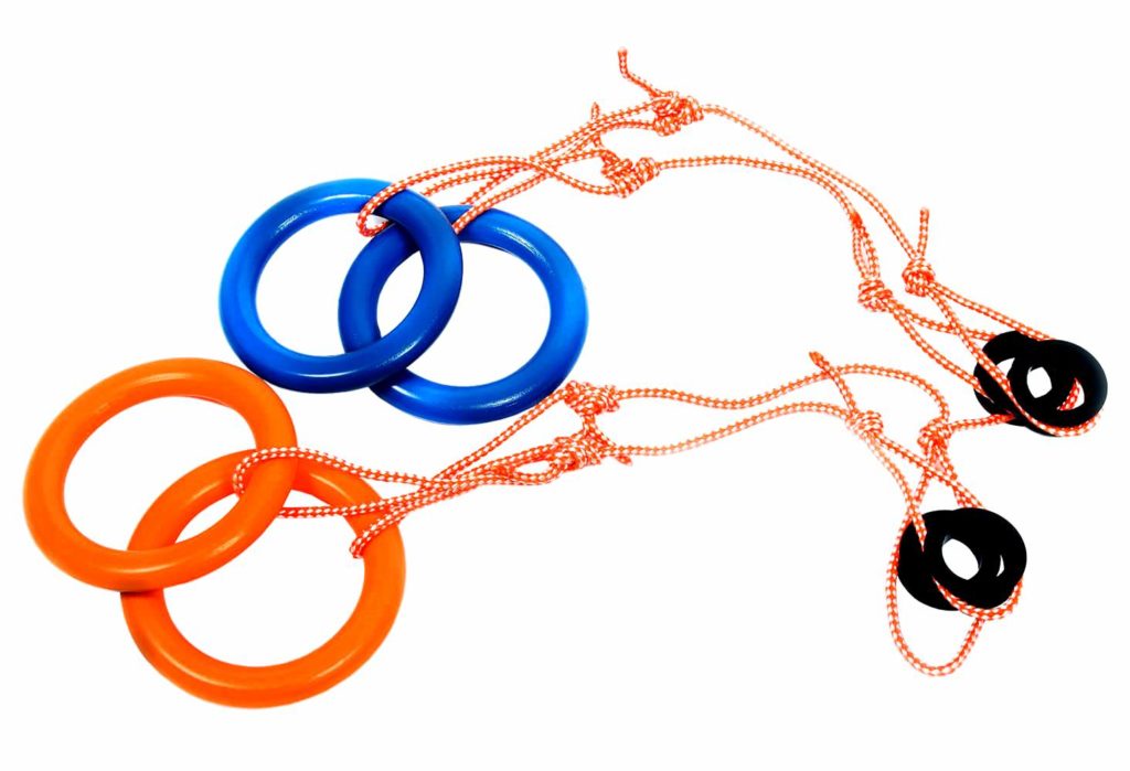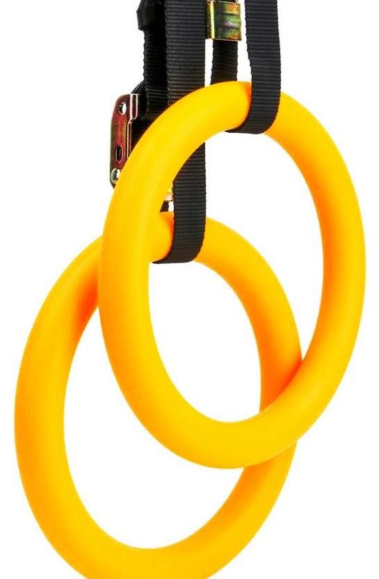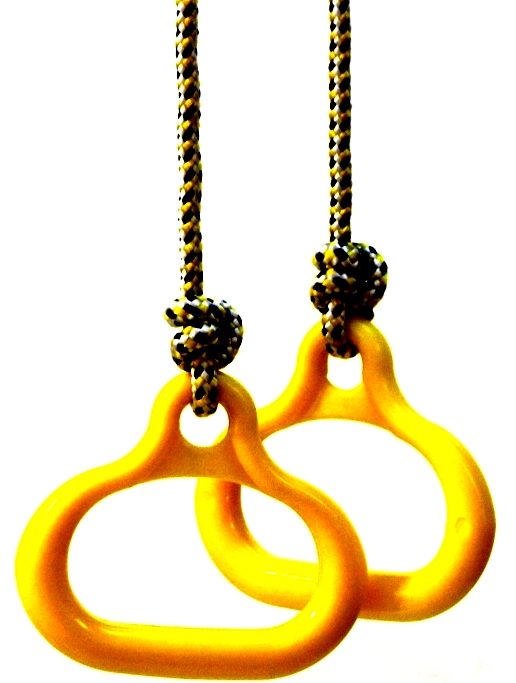 The kids love to train on such a projectile. It not only improves mood, but also increases endurance, strengthens muscles and the vestibular apparatus, pumps up the press, arms, back. There are notches and irregularities on the plastic rings that allow babies to cling tightly to them. They are suspended on a 10 mm diameter cord. The product fully complies with the established GOSTs. The maximum permissible load is 50 kg. It is recommended to engage in children who have reached the age of three.