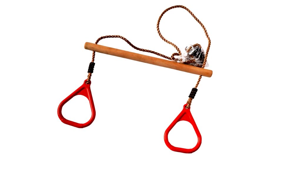 The bright red projectile is perfect for kids who are fond of gymnastics since childhood and who want to be strong and healthy. It is an additional equipment to the sports complex. Used by boys and girls over the age of three and weighing no more than 50 kg. Can be hung both outdoors and at home.