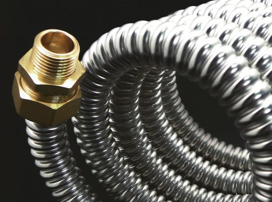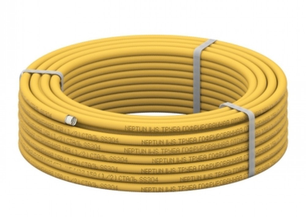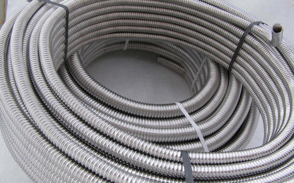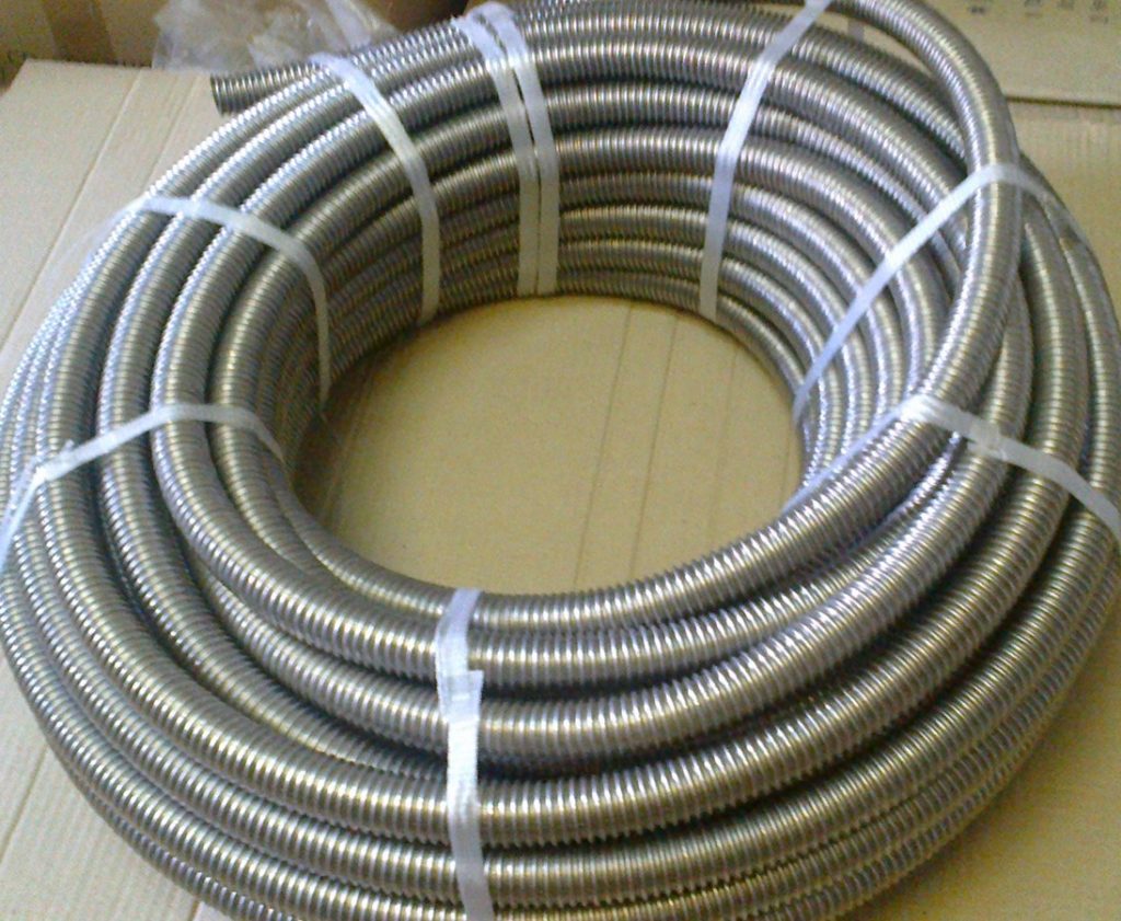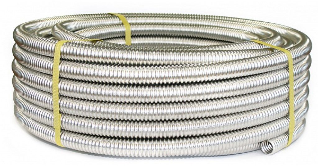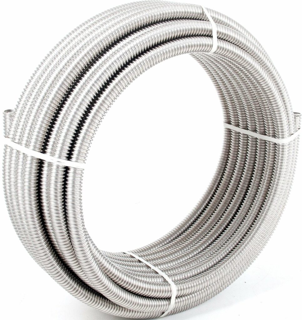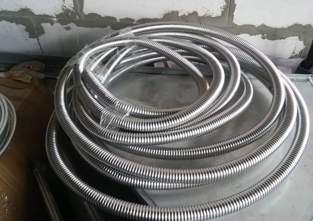 The flexible corrugated pipe is made of stainless steel and covered with special polyethylene. It can be used both for interior decoration of premises and for exterior work. Installation is carried out without the use of welding. All fittings can be purchased at any store.
