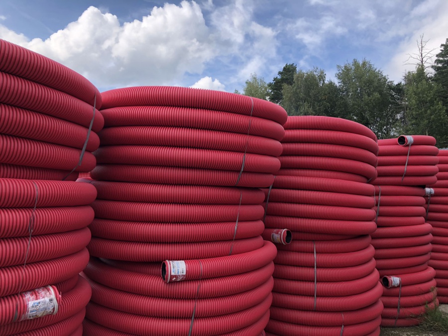 This type of corrugated product is used in industrial construction work. Large diameter allows laying underground cable lines. Made from polyester. Has a high resistance to mechanical damage. For installation, it is necessary to use couplings that can be purchased from a specialized store.