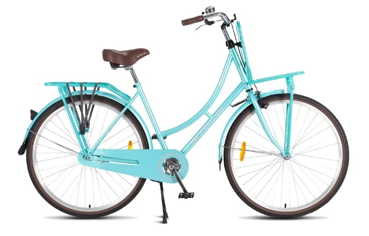 This model is a classic men's bicycle. Available in two colors: black and dark blue. Thanks to a sturdy steel frame and large wheels, such an assistant is not afraid of obstacles or collisions. And also with him it is easy to perform various maneuvers, overcome curbs and even stairs. The steering wheel is also made of steel, it is possible to adjust its height. The rim braking system makes it easy to stop at the right moment. In addition, the kit includes a large trunk and a footrest.