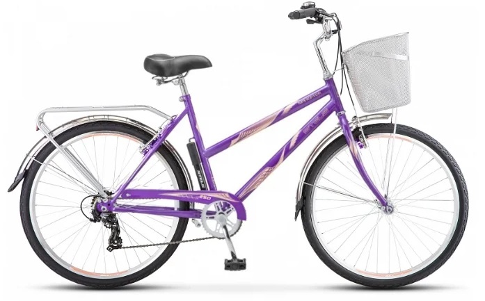 Any woman will be delighted with such a city bike. After all, it has three bright colors that will not go unnoticed in the city. And if you add to this its characteristics ... "Stels Navigator 250 Lady 26 Z010" has a steel frame, and wheels with a diameter of 26 inches will help you easily maneuver in the city and overcome small obstacles. There is a basket at the front where you can put a purse or a bag of groceries, and a trunk is provided at the back. For a comfortable ride, the manufacturer has set 7 speeds. This will make it easier to pick up speed and then control it. For a comfortable stop, a rim braking system is provided, the stopping will be smooth or sharp, depending on the force of pressing the lever.