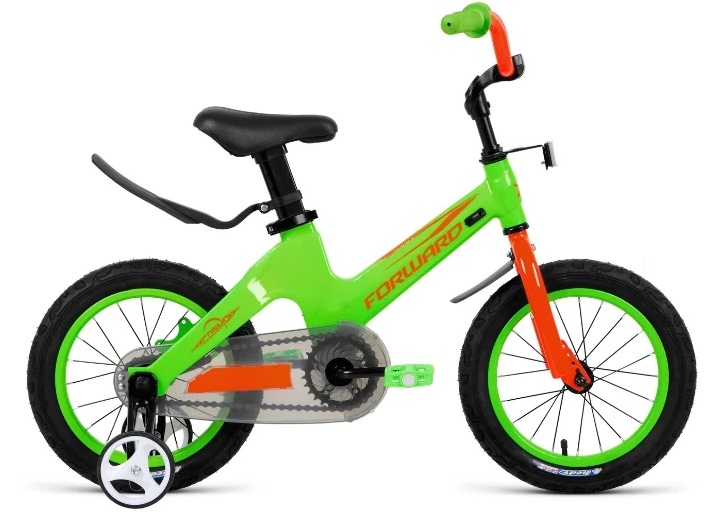 This bike will be appreciated by both young riders and racers. The manufacturer presented this model in seven color options, thanks to which this city bike will suit a child of any gender. The frame is made of durable magnesium alloy and comes in 4 sizes. Therefore, you can ride it from 2 years old. For greater reliability, two additional wheels are provided that will prevent the child from falling during the learning process. The wheels are 12 inches in diameter. A reliable foot brake is installed for a quick stop. The saddle is made of wear-resistant material, but the ride will not cause discomfort. The chain has protection, this allows you not to worry about the integrity of the clothes. Plastic fenders are installed to protect against dirt.