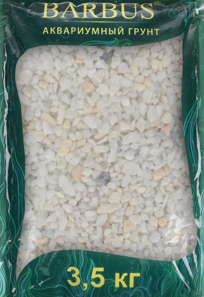 Designed for freshwater aquariums, it is a natural stone (marble) crumb. Produced by the Russian manufacturer "Barbus" and is varied in color and fractions - there is white soil, black and colored. The particle size is also variable - from 2-5 mm to 5-10 mm, which makes it suitable for aquariums of different sizes.