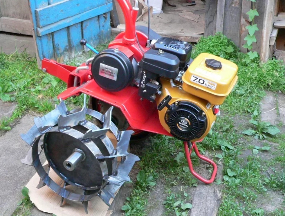 They are used for domestic Saluta and Agata - a self-cleaning option. They have a diameter of 68 cm, a width of 13, and a weight of 17.5 kg. Heavy attachments to increase the weight and stability of the plow. Suitable for all types of work - plowing, loosening, harrowing, hilling. Attached to the gearbox shaft with a sleeve. Welded securely. According to customer reviews, they serve for a long time.