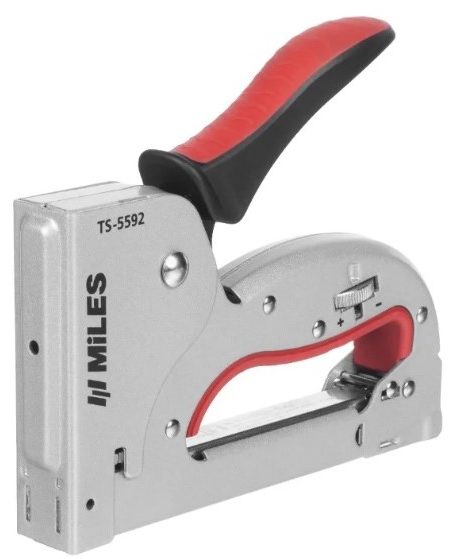 The furniture stapler does an excellent job of joining materials using various sizes of tooling. Suitable for chores. Equipped with ergonomic handles for a firm grip and safety during use. The percussion mechanism does not require special efforts to use.