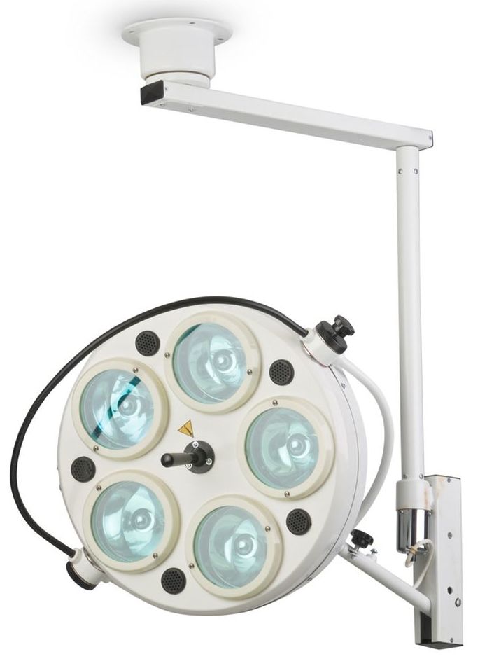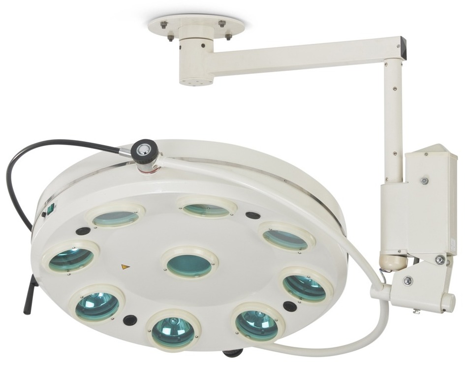 This product is represented by a ceiling structure with one dome with a diameter of 0.5 m. It uses halogen lamps. The bright shadowless stream is identical to the daylight and spreads over the operating table within a radius of 1.3 m. Located 0.8 m from the ceiling, the unit has a sterile handle that allows you to adjust the direction of light depending on the need for the procedure. The unit, which weighs 31 kg, is powered from a standard electrical network.