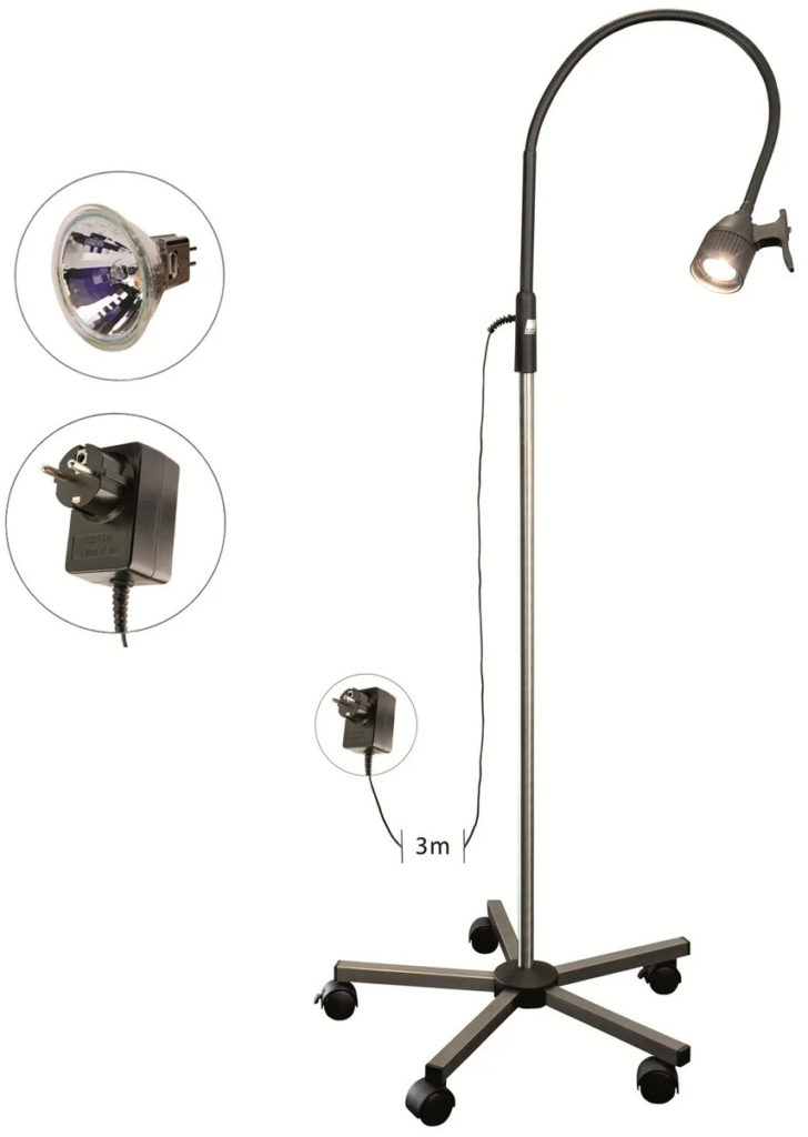 This product represents a mobile model of a light fixture with a halogen light source. It showed high performance as additional lighting in minimally invasive surgical interventions.