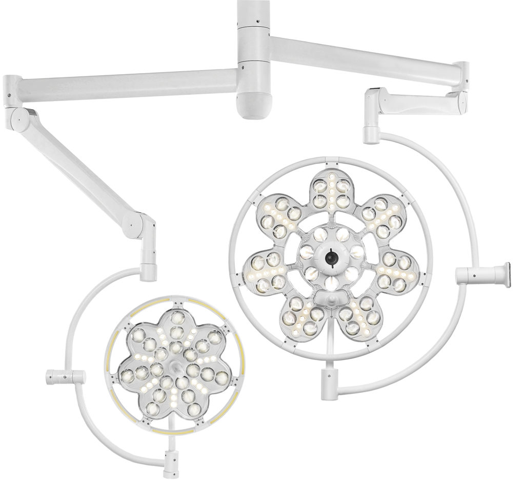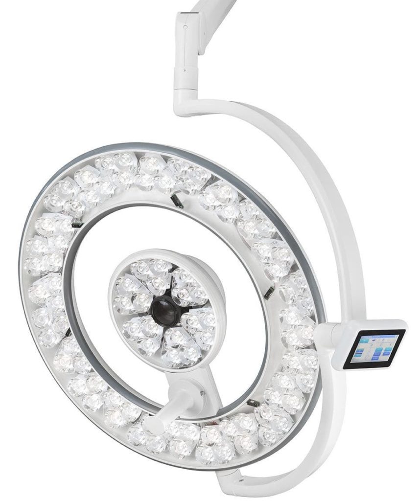 Ceiling lamps are the main ones. They are positioned directly above the operating table to maximize light output over the required space.