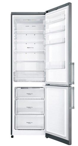 The two-chamber model with a glossy body made of durable plastic and steel in silver tones combines stylish looks and functionality. Suitable for rooms with high ceilings. Large overhead handles on the freezer and refrigerating chambers look a little ambiguous. The linear inverter compressor can reduce the consumption of electricity. An electronic control system helps keep all systems under control.