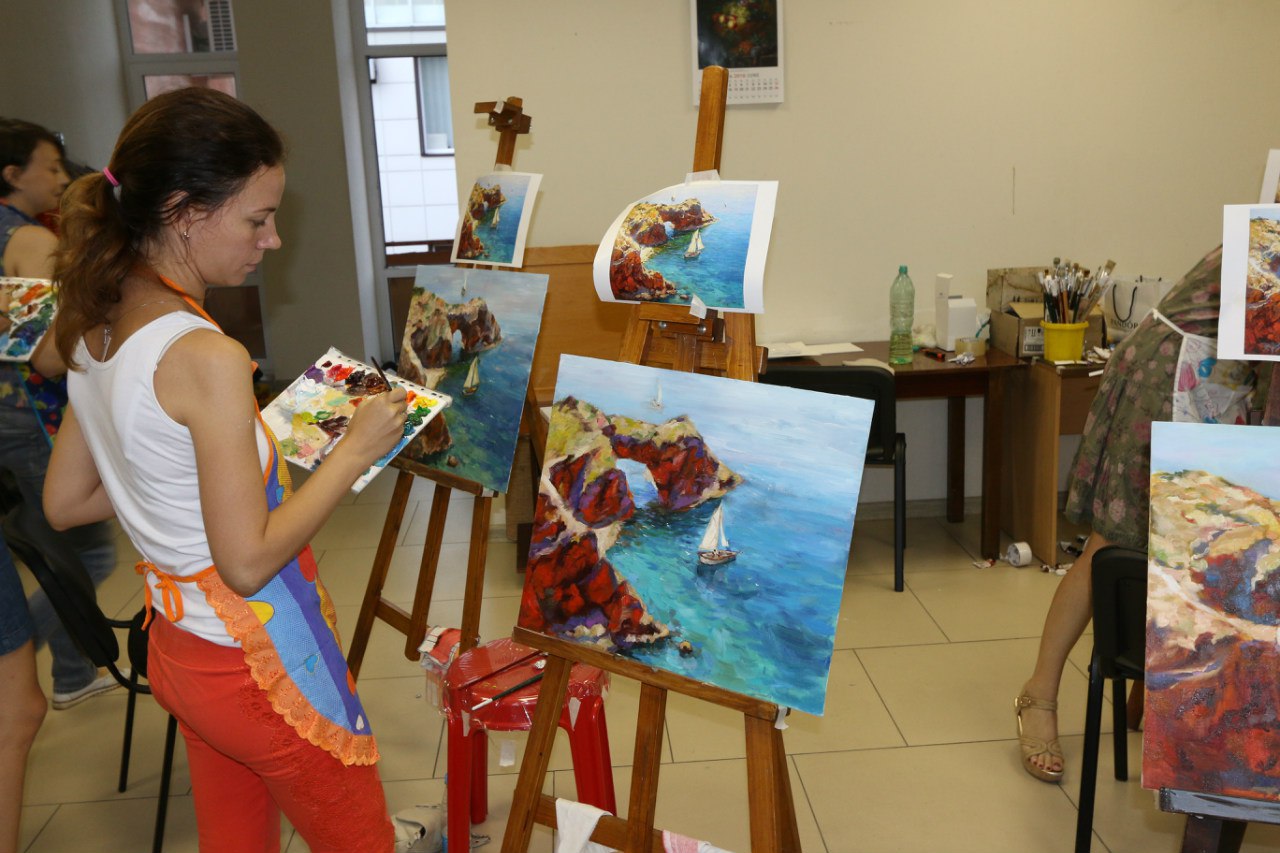 This studio works with people of all ages: schoolchildren, their parents and grandmothers. The staff say that everyone can paint. Participants are offered lessons in silk painting, training in working with acrylics, brushes, palette knife and pastels. This practice has a beneficial effect on the psyche. This is a kind of therapy that heals the soul with beauty, pouring new strength into the body.