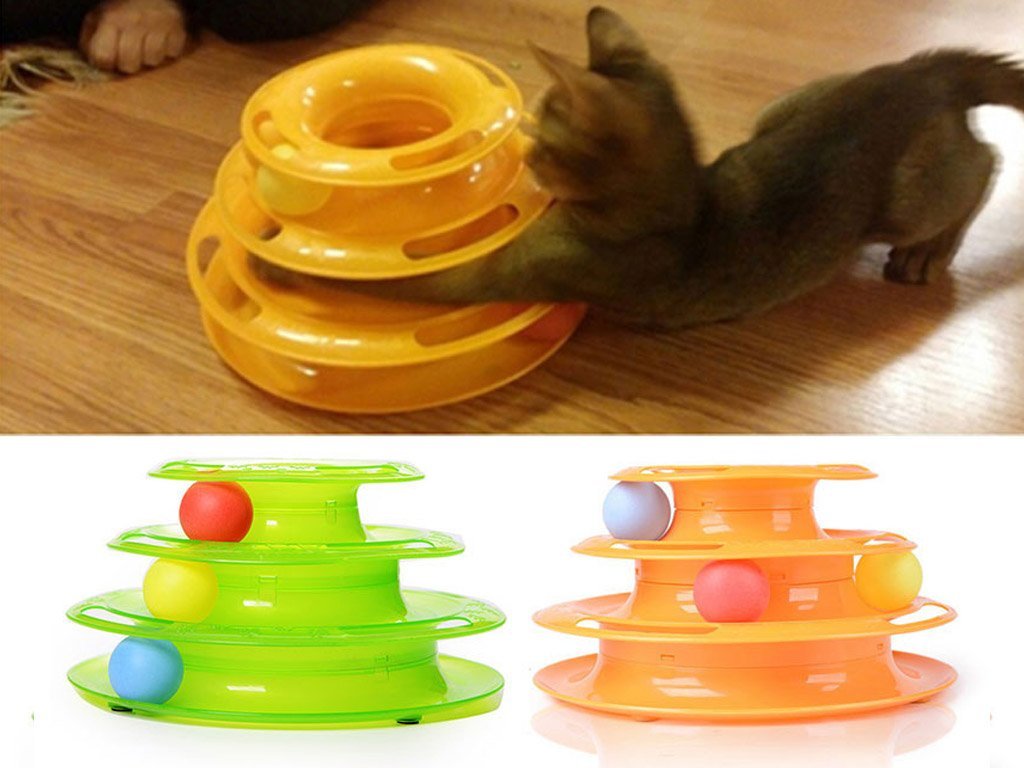 Various game tracks-pyramids with colorful balls and several floors can keep pets busy for a long time. And carousels with mice stimulate the hunting instincts, since the toy mice inside are running all the time, provoking the pet.