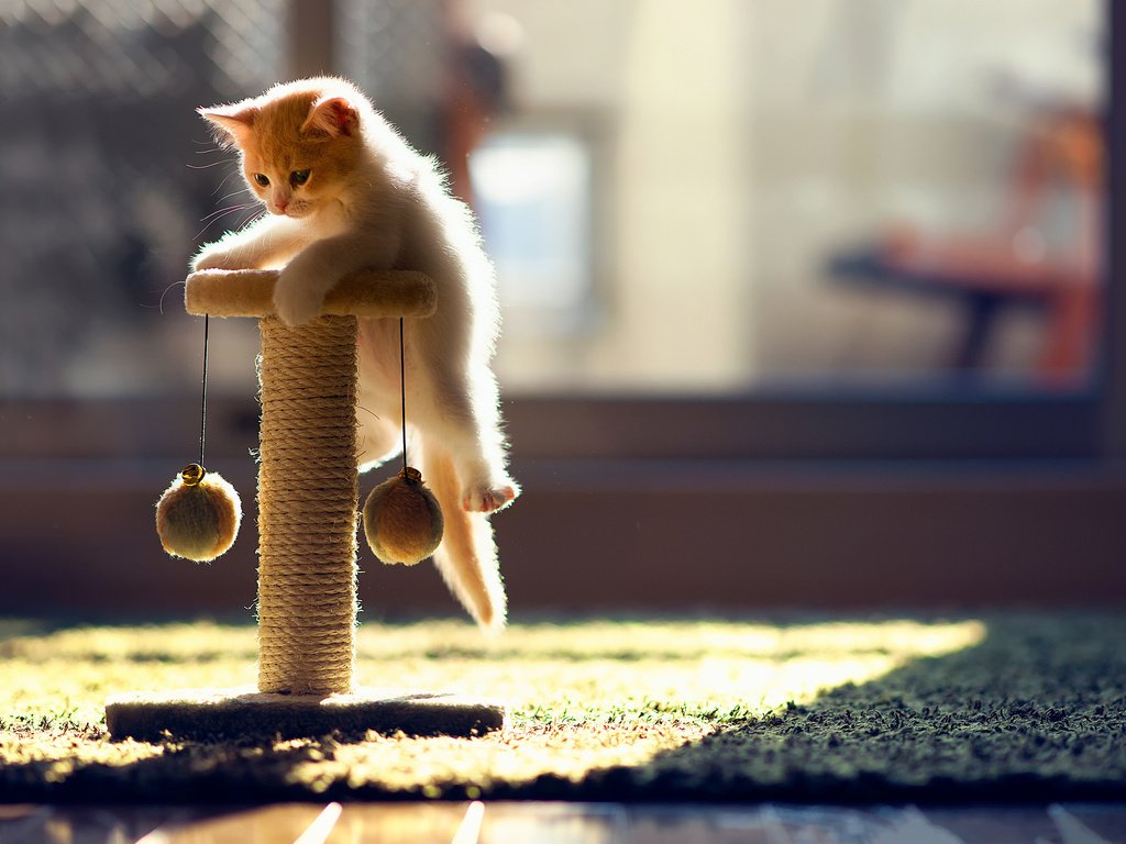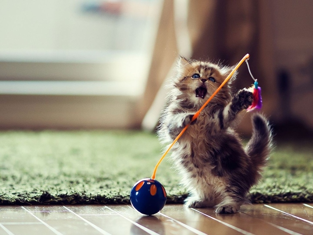 Small toys are more suitable for small kittens. There is no need to purchase fixtures with a lot of small parts. Also, toys that make loud sounds will not work, they can scare kids. Devices that are too large and heavy will also not work.