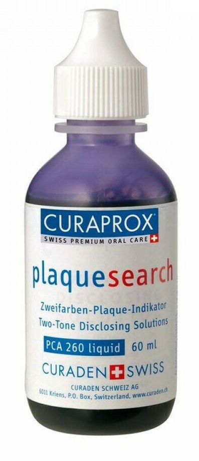 The tool is presented in the form of a liquid. Made in the USA. The volume of the bottle is 60 milliliters. Excellent replacement for chewable tablets. Application gives a two-tone effect: old plaque becomes blue, fresh - red. Consists of organic dyes, glycerin and water. To remove the product, you must thoroughly brush your teeth. One bottle for adult patients costs about four thousand rubles.