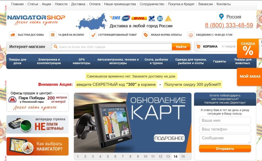 A large store offering its customers a wide range of different products. The Navigator Shop has existed for over 15 years and works only with reliable, trusted suppliers. The product range is divided into separate categories:
