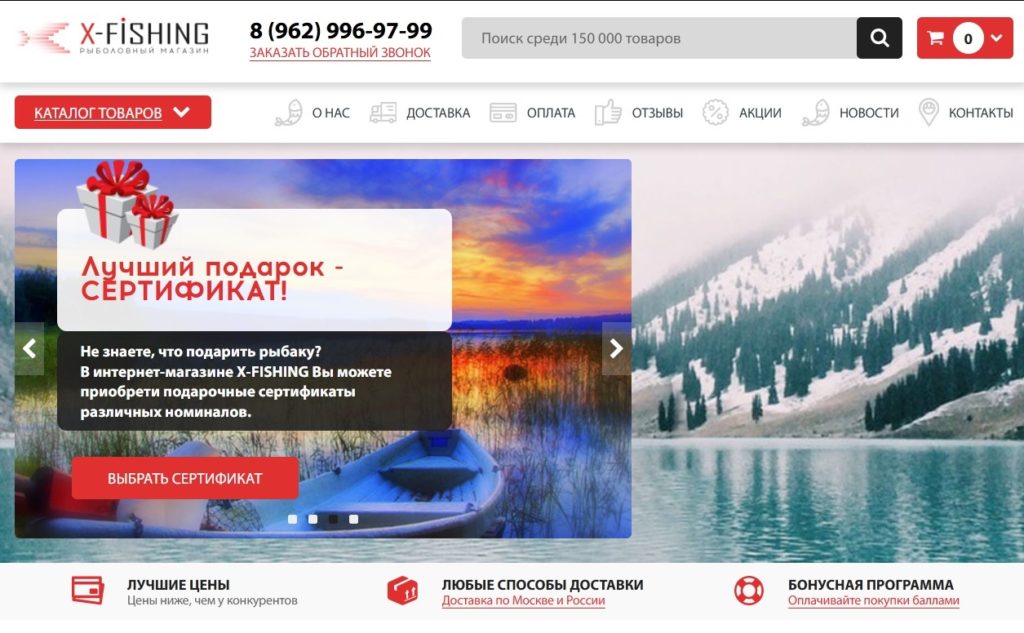 X-fishing allows you to purchase goods at a discount, runs regular and seasonal promotions that significantly reduce the already attractive cost of products.