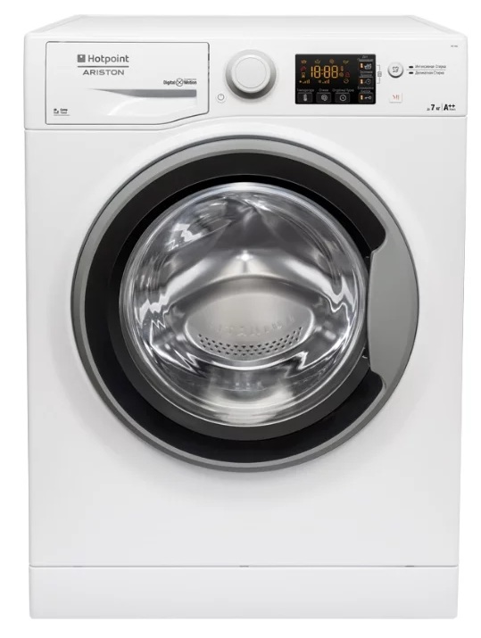 Front-loading unit from the Hotpoint-Ariston brand with electronic control system, direct drive and color display. The body has a partial protection against water leaks, protection from children. Installed imbalance control and foam level. It is possible to select the spin speed or turn it off altogether if fabrics require it, as well as adjust the operating temperature.