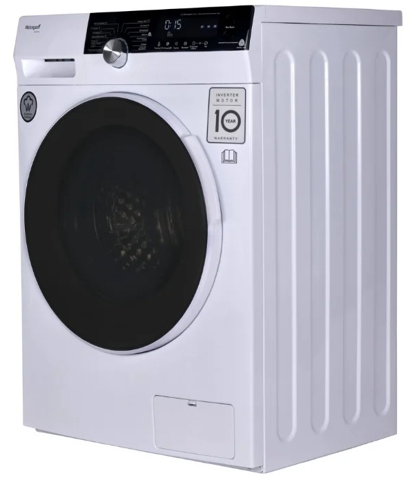 Household freestanding appliances (Weissgauff brand) with a push-button control system, a rotary switch for operating modes and a large display. Front loading, you can select the temperature of water heating and spin speed. There are separate programs for wool and bed linen. There is a function of additional loading of linen through the main hatch.