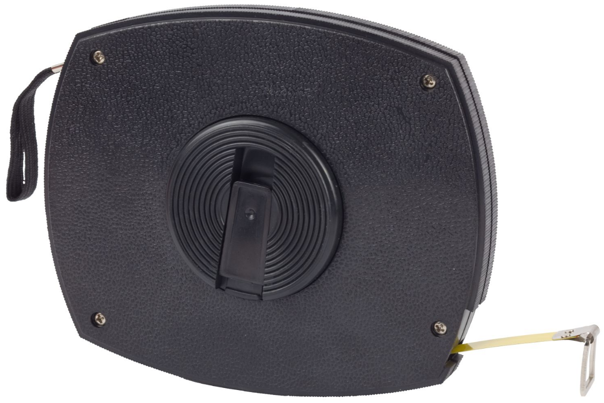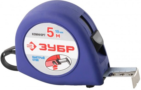 A metric tape measure is a reel with a measuring band placed in a housing. Equipped with a return mechanism, which is activated by means of a mechanical handle or return button, a latch. The measuring tape can be equipped with a digital block that counts the number of revolutions of the reel and transmits the measuring data to an electronic display.