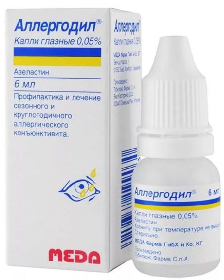 Antiallergic drug based on azelastine hydrochloride - a blocker of histamine H1-receptors. Allergodil is used for the prevention and treatment of both seasonal and year-round allergic conjunctivitis. Dosage - 1 drop 2 to 4 times a day. The use of Allergodil is possible in children over 4 years old. Dispensed without a doctor's prescription.