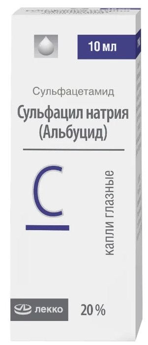Sulfacetamide-based antibacterial agent. Shows activity against most gram-positive and gram-negative bacteria, as well as chlamydia, intestinal and Pseudomonas aeruginosa. Produced in different concentrations: 10% for newborns and infants, 20 and 30% - over 6 years old and adults, respectively. The dosage is 2-3 drops 3 times a day.