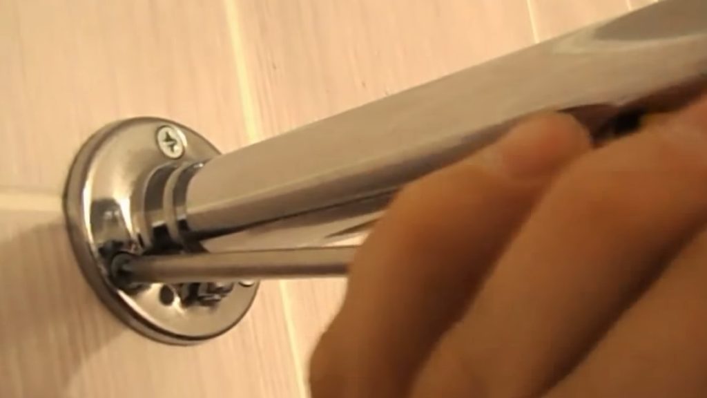 The 3rd place is occupied by a bar with a retractable rod, which allows you to adjust the length, achieving the desired size. By means of a spring, the rod is mounted between parallel walls, making installation simple without drilling into the walls.