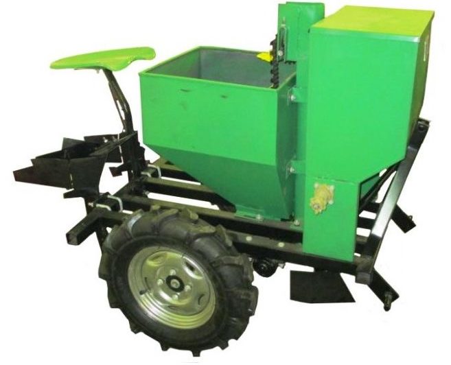 A device designed for seasonal potato planting. Has the form of attachments, aggregated to the tractor. The main feature is high efficiency. Fully mechanizes the process, reduces the time of work, significantly reduces labor costs. Made by a Chinese company. Begins to operate simultaneously with the movement of the mini-tractor.