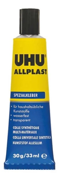 The basis of this product is acrylester. UNU Allplas is suitable for working with synthetic resin plastics. This product can be used both in everyday life and not in production. It is often used for construction and repair work, as well as in needlework for attaching decorative elements. In addition to plastic, UNU Allplas is capable of gluing glass, ceramics, wood and other materials.