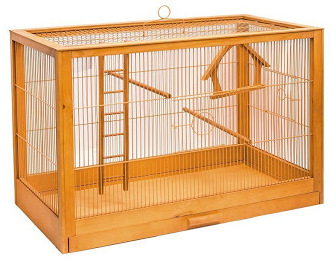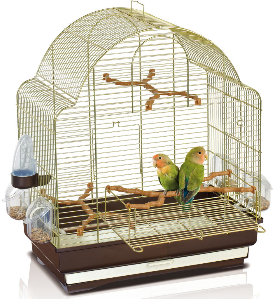 These products are distinguished by their large dimensions, which are 69.5 cm long, 44.5 cm deep and 84 cm high. The cost of such a structure is quite high - almost 15,000 rubles. This is due not only to the large dimensions, but also to the quality of the materials used. The metal part of the frame is made of durable plastic or brass coated wire. The top of the structure opens to give the birds some time. The tray is retractable and made of ivory material. The set of related parts includes: a rotating feeder, a bottle for water, wooden perches, a bell and a toy with a mirror.