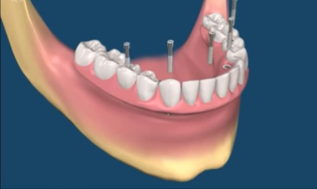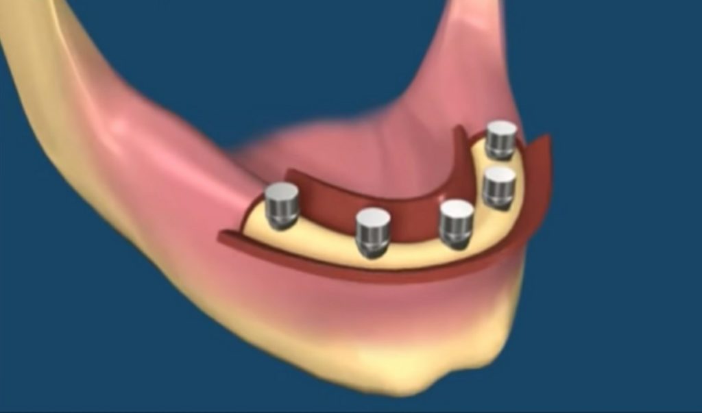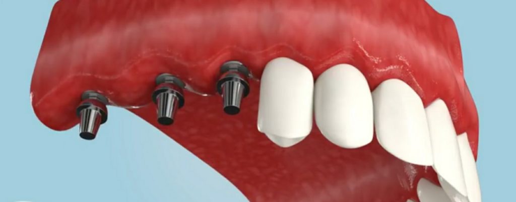 This technology allows you to restore the dentition using four rods. Nobel Biocare holds a patent for this invention. After successful engraftment, a fixed prosthesis is fixed. The operation involves the installation of two implants in the anterior region of the upper jaw at a certain angle. The other two are also placed at an angle in the lateral area. This method is most justified when it is impossible to build up bone tissue for physiological reasons.