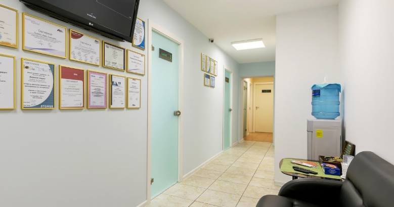 The clinic is located in Kolpino, an hour's drive from the Ring Road to the southeast of the historic center of St. Petersburg. For the sake of fairness, it should be noted that all the centers of this network enjoy constant popularity and trust among residents of St. Petersburg and Leningrad Oblast. The prices are not the lowest, but the quality justifies the high cost of the implants and the manipulation of their installation. The cheapest one costs 26,890 rubles. When performing express implantation, you will have to pay much more. Visitors like the doctors' competent approach to the problems of implantation, intelligible detailed consultations, sensible advice, good preparatory work for the operation. Doctors give a guarantee of the result, as evidenced by numerous positive reviews, words of gratitude to the specialists of the center. The offices, treatment rooms, waiting areas have been renovated and equipped for the convenience of visitors. There is a small play corner for children. Little patients are not afraid of the dentist, because here they are greeted with colorful soft toys, board games, funny cartoons that can be watched right during the appointment in the doctor's chair.