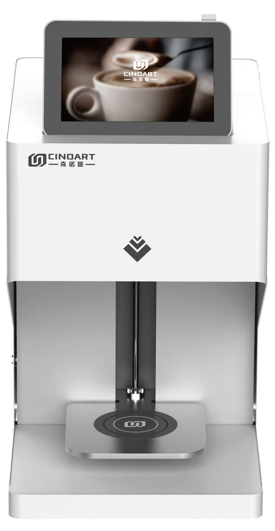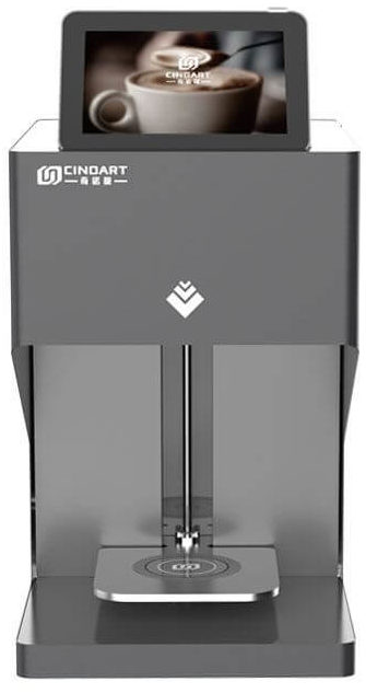 Chinese brand, the device prints well on any beverages with dense foam and small confectionery products. It can work in black and white and color modes. The palette consists of blue, yellow, red and brown colors. It has its own database, images can be downloaded from mobile devices. Restriction on the height of the media - 18 cm, print area - 11x11 cm, drawing time: from 10 to 20 seconds, depending on the complexity and tinting.