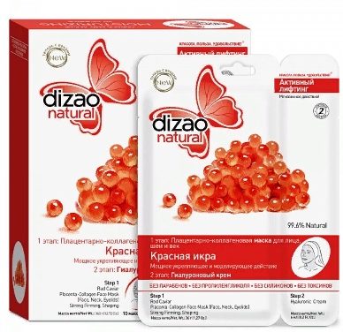 The two-stage mask of a famous Chinese brand contains 99.6% natural ingredients. The first stage of care is a material with active ingredients: placental protein; marine collagen; herbal ingredients, red caviar extract. The fabric is conveniently distributed, following the shape of the face, completely covering the neck. The fixing stage is hyaluronic cream, which serves as a conductor of vitamin B deep into the dermis. Online and offline sale. Price: from 628 rubles per pack (10 pieces). The manufacturer recommends using the product daily for ten days, then 2 times in 7 days.
