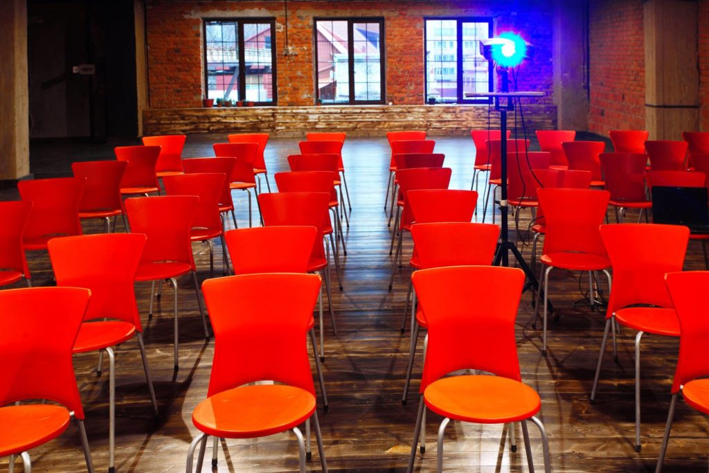 When choosing, it should be borne in mind that empty seats in an overly spacious hall will cause a feeling of uncertainty among the speakers. In addition, the organizers will have to pay extra for rent. A room that is too small is also not the best choice. The fuss with the search for additional chairs, the stale air in the room will "smear" positive impressions even from the material that is useful and well presented by the lecturer.