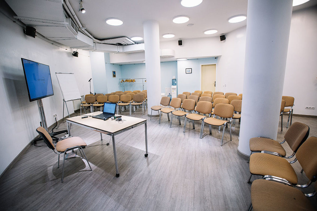 The room is suitable for conducting trainings, seminars. Free layout, capacity up to 24 people, the possibility of video conferencing for an additional fee.