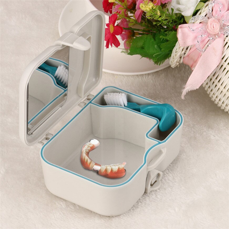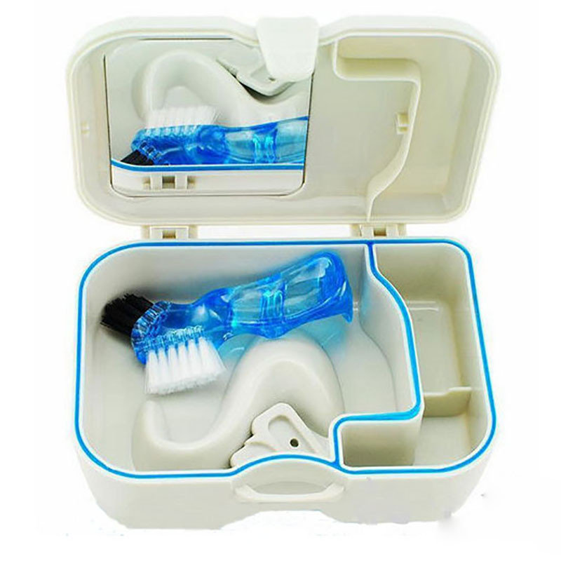 This case is one of the best manufacturers of oral care products. The popularity of models of this type is due to the presence of an additional compartment in which you can store a brush for cleaning the prosthesis (included in the delivery set, equipped with two heads of different hardness), tablets for a disinfectant solution, and other hygiene items.